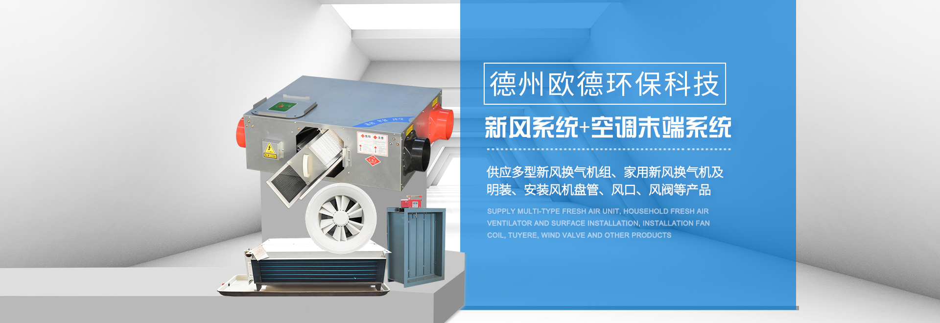德州歐德環(huán)保科技有限公司位于山東省德州市武城經(jīng)濟開發(fā)區(qū),是一家集空調(diào)設(shè)備產(chǎn)、研、銷相結(jié)合的現(xiàn)代化企業(yè)。歐德以技術(shù)水平、服務(wù)標(biāo)準(zhǔn),贏得客戶的信任。公司建有現(xiàn)代化水平的商用空調(diào)設(shè)備生產(chǎn)線與末端設(shè)備生產(chǎn)線,可定制生產(chǎn)多型空調(diào)設(shè)備。  公司主要產(chǎn)品:風(fēng)機(排煙風(fēng)機、軸流風(fēng)機、邊墻風(fēng)機、斜流風(fēng)機(混流風(fēng)機)、屋頂風(fēng)機、離心風(fēng)機、誘導(dǎo)風(fēng)機)、新風(fēng)處理機組、吊頂式空調(diào)器、風(fēng)機盤管(臥式暗裝風(fēng)機盤管、臥式明裝風(fēng)機盤管、立式明裝風(fēng)機盤管、卡式風(fēng)機盤管等),各類通風(fēng)管道(共板法蘭風(fēng)管、酚醛風(fēng)···